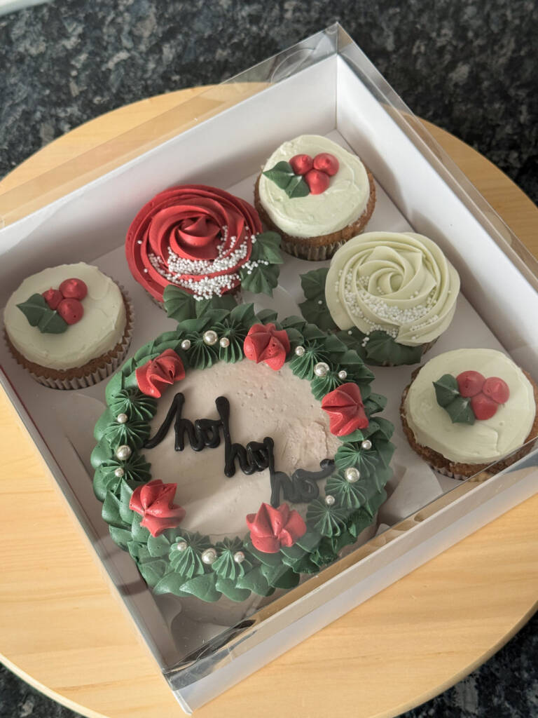 Bundles Christmas Bundle 2025 (Limited) €125 for a full set First five orders receive 15 % off Includes:1 Bento Cake (serves 2-6) — choose any flavor from our Cakes selection5 Cupcakes — choose one flavor from our Classic Cupcakes line *Designs are set and not customizable but you can add your own personalized message on the cake *Each box includes a gold vinyl “Merry Christmas” sticker with a clear background